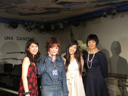 ウナカンツォーネにも今日からクリスマスツリーが登場しました。ステージの上でキラキラと色とりどりに輝いてステージを彩どっています。本日は渡辺歌子さん、初出演の丸山康子さん、ほのかさんの素敵な三名のゲストをお迎えしましきらびやかなステージとなりました。ほのかさんの歌い上げる切ない愛の歌、丸山康子さんのセクシーで魅力的な歌の世界、渡辺歌子さんの美しく清らかな歌声で、今年最後の月の始まりに相応しい素敵な夜となりました。By:佳南
