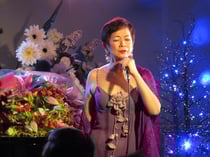 1部ではワイン色のドレス,2部は黒いドレス(肩にエッフェル塔のブローチ)と大人の魅力たっぷり。