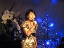 本当に沢山のお客様にいらして頂き、有難うございました。熱気あふれるコンサート。歌詞のほとんどをご自分で作られた松戸さん。1部はベージュ色のワンピース、2部では真っ赤なドレスで情熱的に。数々のご自分の歌詞を聴かせて下さり、素晴らしいコンサートでした。By:優佳