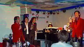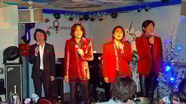 16日 12月 2011 12/14(水)『ROMEO』佐野文彦・唯文・高木椋太・高橋良吉 男性ボーカル4人による人気イベント『ROMEO』クリスマスバージョンという事で、今回の衣装のテーマは赤か緑を身につける事だったそうですが、オーナー高橋良吉以外の皆さんは見事なまでの赤いジャケット!鮮やかです!いつもは女性のお客様が多いロメオナイトですがこの日は男性のお客様の団体様にもいらして頂きました!毎回趣向をこらした内容で、今回は主にクリスマスソングで盛り上がった夜でした。 高橋良吉 高木椋太さん 唯文 tagPlaceholderカテゴリ: 12月のブログ