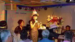 本当のお誕生日は6/12と言う横山さん、今年は10回目のバースデイコンサート。満員御礼でのコンサートでした。普段聴く事のない『コーリング ユウ』など、お客様のリクエストにより構成されたコンサートでした。2部ではなんと!5万円もした!と言うイタリア製デニムショートパンツをお召しになり『ワイルドだろ~』と随所にスギちゃんネタを発する横山さん(笑)