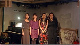 24日 2月 2013 2/21(木)友納あけみ・杉田真理子・あみ・汐入規予 今夜は豪華ゲストをお迎えして『MUSE』をお届致しました。 その魅力ある歌声にお客様も目をつぶり聴き入られて、とてもゆったりした夜になりました。 ちなみに私はあみさんの歌を聴いたのは今回が2回目なのですが、トークの入ったステージは今回が初めてで、ステージを通して楽しませて頂きました。本日はワインのご注文が多かったです。ワインにぴったりのステージをありがとうございました。By:MEGUMI 汐入規予さん あみさん 杉田真理子さん 友納あけみさん tagPlaceholderカテゴリ: 13年2月