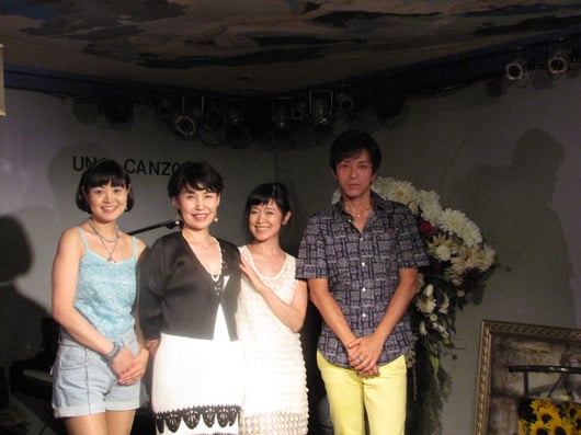 05日 9月 2013 8/31(土)花木さち子・松戸智絵子・横山智子・神野悠斗 8月もとうとう最終日です。ひどい暑さの一日になりましたが沢山の御客様がお越し下さいました。涼しげな装いでいらして下さったゲストの皆さんです。8月最後、爽やかな曲が多いステージとなりました。By:南 tagPlaceholderカテゴリ: 13年8月