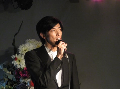 14日 9月 2013 9/11(水)唯文・高木椋太・牧澤友也・DAIJI 本日は『ROMEO』に変わりまして『LEON』でした。素敵な男性ゲストの甘い歌声のお客様はうっとりと耳を傾けていらっしゃいました。バラードが心地よく響く贅沢な夜でした。ピアノ演奏は大貫祐一郎さん。本日も甘い夜をありがとうございました。By:恵愛 座って歌う唯文さん tagPlaceholderカテゴリ: 13年9月