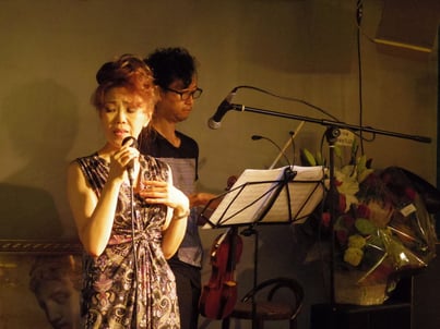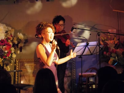 19日 9月 2013 9/16(月)鵬いづみコンサート 鵬いづみさんにとって通算18回目のバースデーライブの本日、日本列島は台風18号が上陸し、東京も午前中は早くも大荒れの天候でしたが、鵬さんとお客様の願いがかないライブが始まる頃には雨もあがり、超満員の店内は歓声と笑い声で溢れていました。ゲストの阿藤快さんとのかけあいもユーモアたっぷりで、鵬さんの情に厚く温かなお人柄が込められたバースデーライブとなりました。By:DAIJI tagPlaceholderカテゴリ: 13年9月