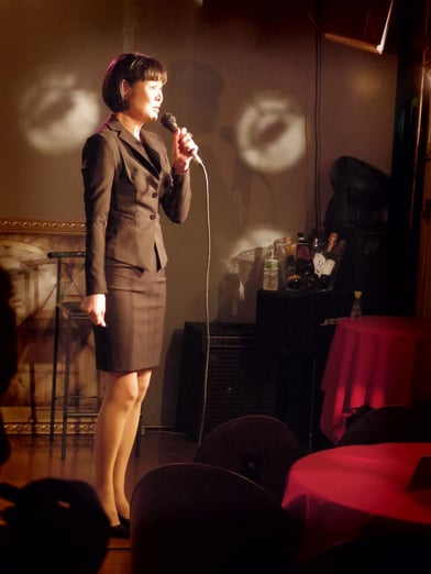 本日は『MOCO'sソングス』と言う事で、横山智子さんオンステージで楽しい夜をお送りしました。タイトなワンピースの黒のチョーカーがとても魅力的な智子さん。光を浴びた智子さんの歌声は女神のようでした。華麗なピアノは大貫祐一郎さん。本日も素敵な時間をありがとうございました。By:恵愛