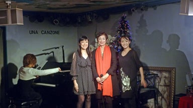 24日 12月 2013 12/12(木)友部裕子・花木さち子・汐入規予 本日は魅惑のワルツと題しまして、大人の魅力たっぷりの一時となりました。寒い冬に心暖まる歌声でスリスマスモード一杯のステージでお楽しみ下さい!By:蘭 tagPlaceholderカテゴリ: 13年12月