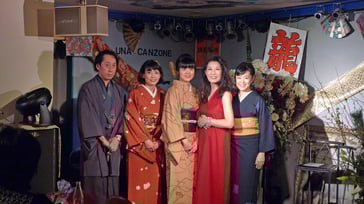 11日 1月 2014 1/6(月)渡辺歌子・花木さち子・横山智子・堀ひろこ 明けましておめでとうございます! ウナカンツォーネ2014年です!ゲストの皆様、お着物でとても華やかに和のウナカンツォーネをお楽しみ頂きました!By:蘭 tagPlaceholderカテゴリ: 14年1月