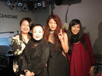 04日 3月 2014 2/19(水)服部まり・山本理恵子・犬童まり子・劉玉瑛 まだまだ寒い日が続きますが、ウナカンツォーネではお雛様を飾り、ステージではパッとお花が咲き春が来たようです。素敵なゲストの方々4名様をお迎え致しました。ソチオリンピック中と言う事でオリンピックの話題や先日の雪の日のエピソード等お話して頂きアットホームで温かな雰囲気のウナカンツォーネとなりました。BY:蘭 tagPlaceholderカテゴリ: 14年2月