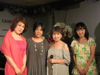 31日 7月 2014 7/19(土)松宮一葉・しぎ翠・ほかま啓こ・しろき歌織 本日は『松宮一葉さんと共に』と言う事で大人の香り漂う4人の女性歌手によるステージ。切なくて甘いメロディーを歌うは当店レギュラーしろき歌織さん。足元から奮い立つような力強い歌声ほかま啓こさん。軽快で麗しいメロディーで紅色の世界を映しだしてくれたのはしぎ翠さん。そして圧倒的な存在感で会場を愛で包み込んでくれたのは松宮一葉さん。今日は降ったり止んだりの雨模様でしたがそれも悪くないと感じてしまう哀愁のステージでした。By:ひろし tagPlaceholderカテゴリ: 14年7月