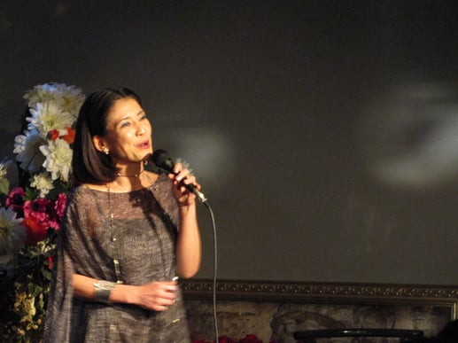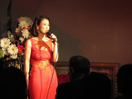 オープニングと共に赤いドレスをまとった堀さんの美声に一回酔いしれます。そうかと思いきや可憐な振る舞いに声援が飛び交うことも。そんな賑やかで和やかな小さなパリを堀さん、城所さん、皆さんで楽しんだ夜でした。By:ひろし