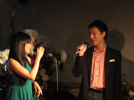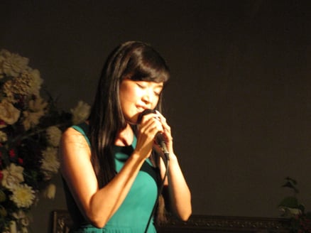 ふんわりした緑色のワンピースと花木さんの透き通る歌声にマイナスイオンを感じてまるで草原にいる様な感覚になりました。また、本日はレギュラーボーカル玉木たかひろさん最終日と言う事でお二人のデュエットも聴けるなど贅沢な一夜となりました。素敵なピアノは大貫祐一郎さん。本日も特別な